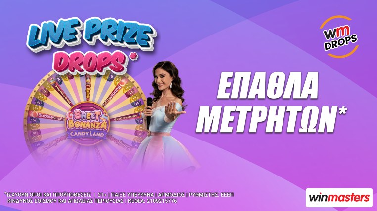 Ένα μοναδικό live prize drops* παίζει αποκλειστικά και μόνο στο winmasters casino live. Μια μοναδική εμπειρία πτώσης επάθλων μετρητών* παίζει για όλο τον Ιούνιο στα ζωντανά τραπέζια της Pragmatic Play και θα τη βιώσουν όλα τα μέλη της winmasters.