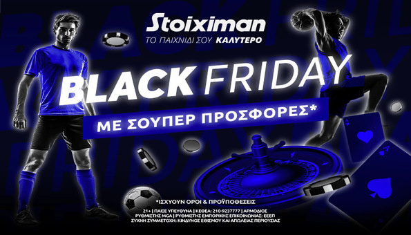 Απογείωση προσφορών* και τιμών στη Stoiximan κατά της διάρκεια της Black Friday τόσο στο Στοίχημα όσο και στο Stoiximan Live Casino.
