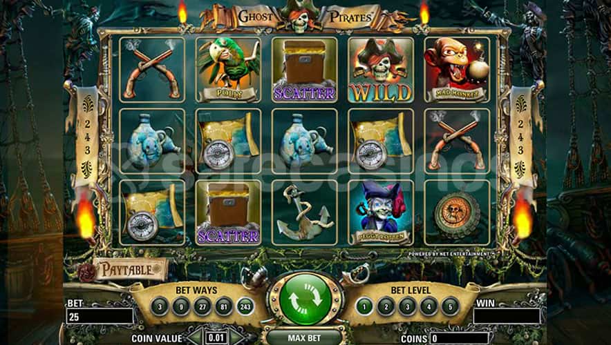 Είστε έτοιμοι για ένα ρεσάλτο; Σας γοητεύει ο κόσμος των πειρατών; Αν η απάντηση είναι θετική, η εμπείρια του Ghost Pirates της NetEnt είναι η πλέον κατάλληλη. Πρόκειται για ένα από τα πιο καλοσχεδιασμένα φρουτάκια της γνωστής ιστοσελίδας, με υπέροχα γραφικά και ευκαιρίες.
