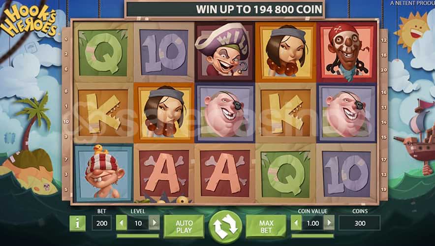 Η δομή του παιχνιδιού είναι αρκετά απλή, με 5 στήλες και 20 πιθανούς συνδυασμούς, κάτι που σημαίνει ότι το ελάχιστο στοίχημα διαμορφώνεται στα 0,20€ και το μέγιστο στα 200€. Τα κλασικά σύμβολα των γραμμάτων και των αριθμών πλαισιώνονται από τους… συνεργάτες του περίφημου Κάπτεν Χουκ, οι οποίοι είναι εδώ για να σας οδηγήσουν σε μεγάλες νίκες.