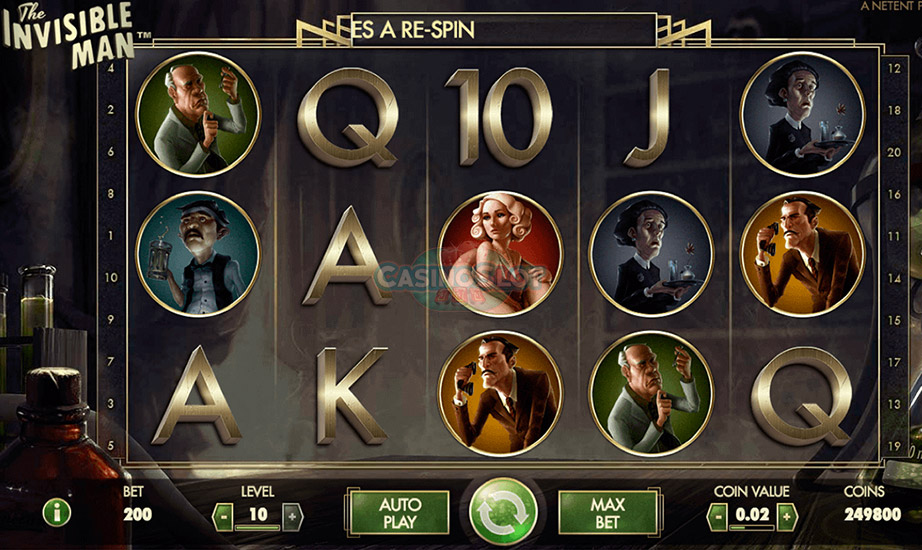 O “Αόρατος Άνθρωπος”, που βγήκε στις κινηματογραφικές αίθουσες το 1933, θεωρείται μία από τις καλύτερες ταινίες τρόμου όλων των εποχών. Η Netent εμπνεύστηκε από την ταινία και δημιούργησε το ομώνυμο παιχνίδι και ένα απ’ τα πιο διαδεδομένα φρουτάκια της, το The Invisible Man, με πρωταγωνιστικές φιγούρες τον τρελό επιστήμονα, τον αστυνομικό και τη Φλόρα Κράνλεϊ.