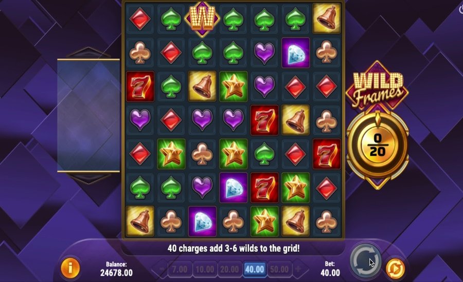Το Wild Frames έχει μία κλασική αίσθηση κουλοχέρη, με ένα φόντο σε μοβ αποχρώσεις. Τα σύμβολα του περιλαμβάνουν χαμηλής αξία τραπουλόχαρτα (σπαθιά, κούπερ, μπαστούνια και καρό). Επίσης υπάρχουν χρυσές καμπάνες, χρυσά αστέρια, διαμάντια και τυχερά κόκκινα 7αρια.