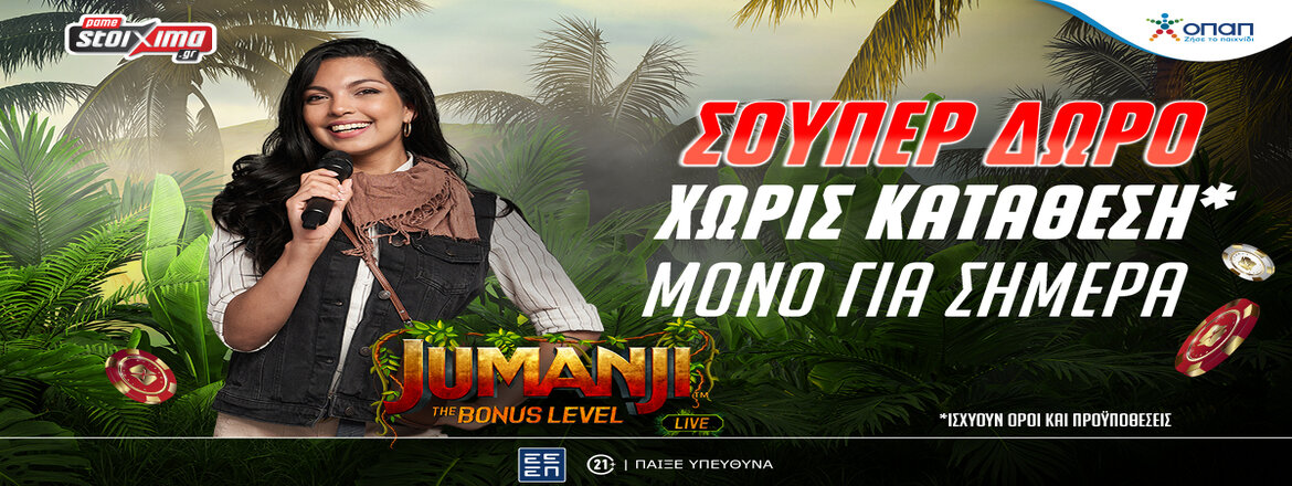 Μια σούπερ προσφορά* τους περιμένει σήμερα (15/01) όλους στο Jumanji: The Bonus Level Live του Pamestoixima.gr!