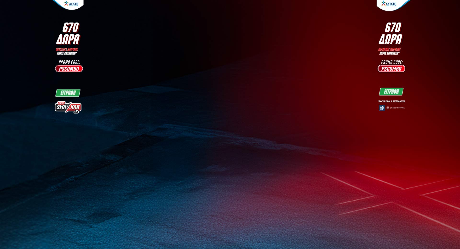 Μια μοναδική τριπλή προσφορά γνωριμίας* με 670 έπαθλα* σε περιμένει στο Pamestoixima.gr με τον κωδικό PSCOMBO! Με τη σούπερ προσφορά γνωριμίας* με promo code PSCOMBO απολαμβάνεις τα μεγάλα αθλητικά γεγονότα του πλανήτη, αλλά και μοναδικά live τραπέζια και shows στο Live Casino του Pamestoixima.gr!