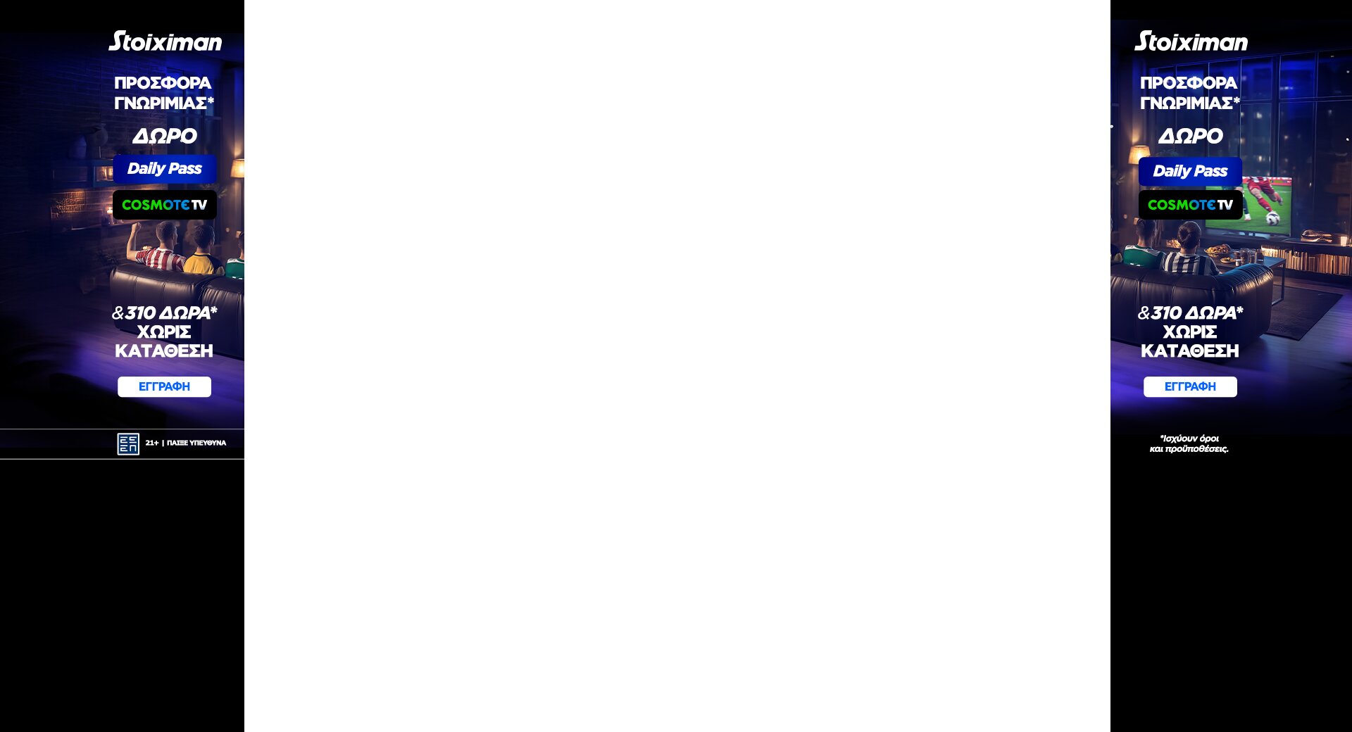 Αν επιθυμείς να γίνεις μέλος της Stoiximan, αξίζει να το κάνεις κάπου εδώ. Με την εγγραφή σου, παίρνεις αυτόματα 310 δώρα* χωρίς κατάθεση και μία μέρα δωρεάν* πρόσβαση στην πλατφόρμα και το αθλητικό περιεχόμενο της Cosmote TV! Αν προχωρήσεις και στην πρώτη σου κατάθεση αμέσως μετά, τα δώρα* γίνονται 620 και παράλληλα, κερδίζεις έναν ολόκληρο μήνα πρόσβασης στην Cosmote TV!